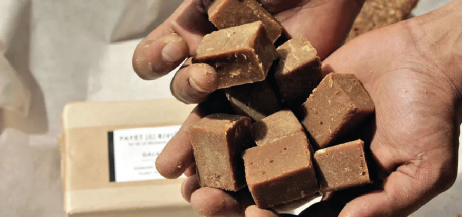 Pourquoi remplacer le sucre par du miel, du sirop d’érable, du sirop de batterie… quand on a du galabé ? Ce sucre de canne artisanal réunionnais, non raffiné, sans colorant ou additif est très aromatique.
