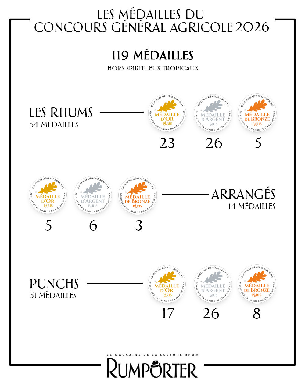 Alors que 2025 marquait un record avec 137 médailles, l’année 2026 en totalise 119, soit une baisse de 13,1 % par rapport à 2025.