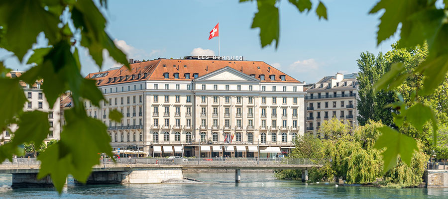 Four Seasons Genève, aussi appelé hôtel de Bergues, est une véritable institution genevoise depuis 1834. Il bénéficie d’une vue imprenable sur le lac Léman qui s’étend à ses pieds, et les cimes des Alpes au loin. L’hôtel propose 115 chambres, dont 43 suites. Au bar des Bergues, on peut siroter tranquillement un cocktail (au rhum, évidemment) sur la terrasse, avec le lac Léman et son célèbre jet d’eau à quelques mètres.