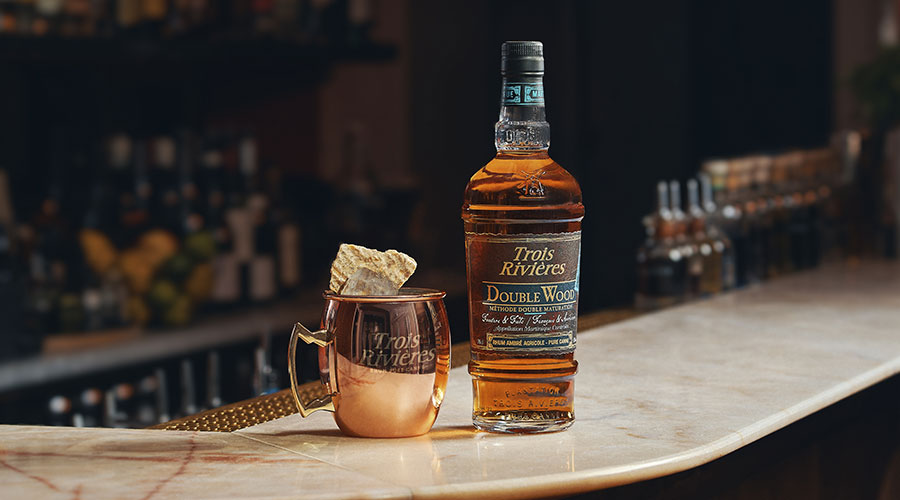 Hugo Simonet, barman en chef à l’Hôtel Bachaumont 4 étoiles (Paris), réinvente le Martinican Mule avec sa recette signature élaborée avec le rhum Trois Rivières Double Wood.
