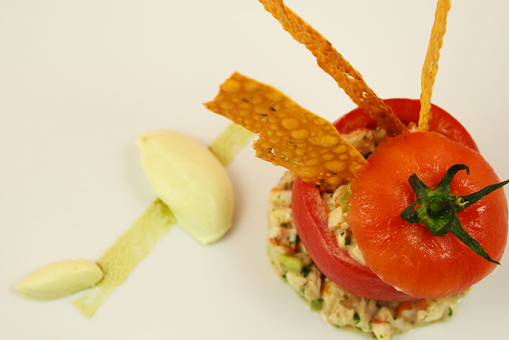 Ingrédients pour 4 personnes Pour la tomates/crevette 4 tomates moyennes 24 crevettes roses 1 échalote…